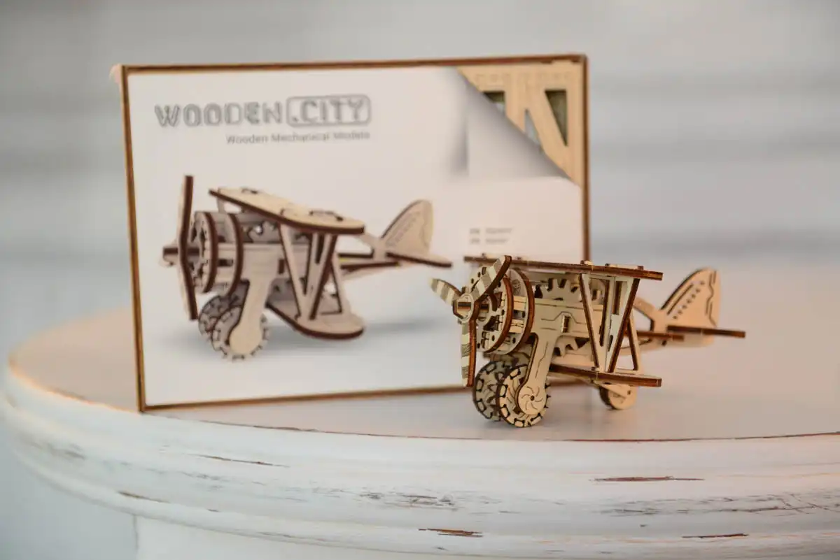 - Le 3D Wooden Plane Puzzle – Biplane évoque les biplans d’entraînement et d’observation de l’entre-deux-guerres, tels que le RWD-8.