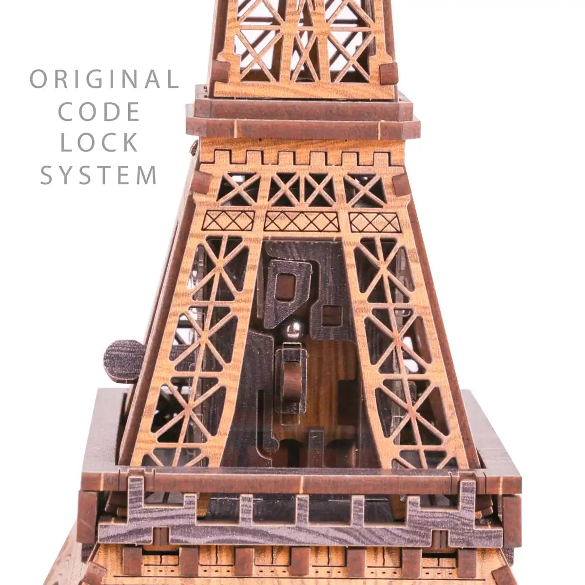 La Boîte Énigmatique Tour Eiffel est bien plus qu’un simple jouet mécanique — c’est une subtile fusion d’architecture et de mystère. Conçue pour être assemblée manuellement, elle comprend des pièces finement découpées au laser qui s’emboîtent parfaitement sans colle. À l’intérieur, un mécanisme secret attend d’être découvert grâce à la réflexion logique, à la patience et à la curiosité. Résoudre son énigme procure une expérience gratifiante, à la fois intellectuelle et sensorielle, qui stimule l’esprit et récompense la persévérance.