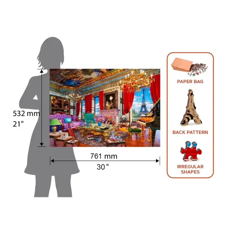 Ce Puzzle en Bois vous invite à un voyage envoûtant à travers le temps. Admirez la représentation captivante d’une salle médiévale, offrant une vue enchanteresse sur la Tour Eiffel. Conçu pour les adultes et les enfants de plus de 14 ans, ses couleurs vives promettent de captiver votre attention.
