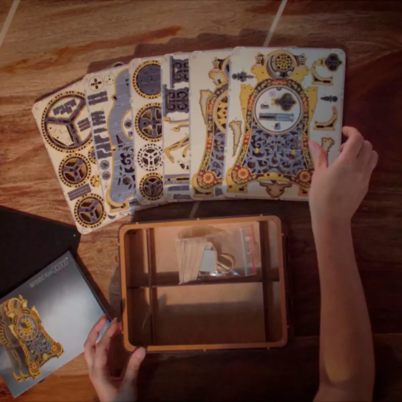 L’Horloge Magique arrive dans une boîte en bois robuste maintenue par des aimants. Cette boîte ne sert pas seulement d’emballage protecteur ; elle se transforme en un support pour l’horloge assemblée et fait office de boîte à souvenirs pour vos trésors, améliorant l’utilité et l’attrait du produit.