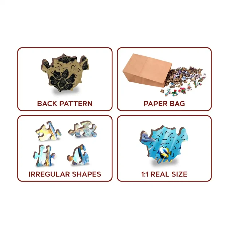 En conclusion, le Poisson Magique de 250 pièces promet non seulement des heures d’engagement mais témoigne également de l’art européen, offrant à la fois un attrait esthétique et une activité familiale chaleureuse. Plongez dans ce monde de détails complexes et de contes vibrants, et laissez la magie se dévoiler à chaque pièce que vous placez.