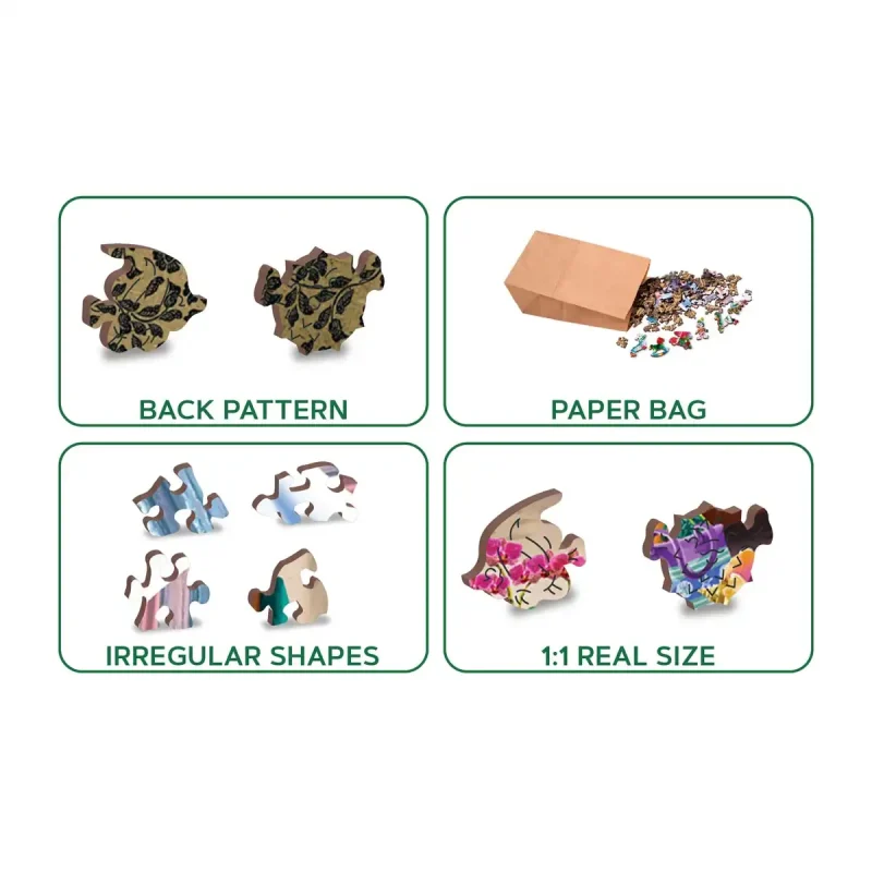 Chaque pièce porte un design sur son revers, ajoutant une autre couche de curiosité. Ce design double aide dans l’assemblage et offre un défi rafraîchissant pour les passionnés.
