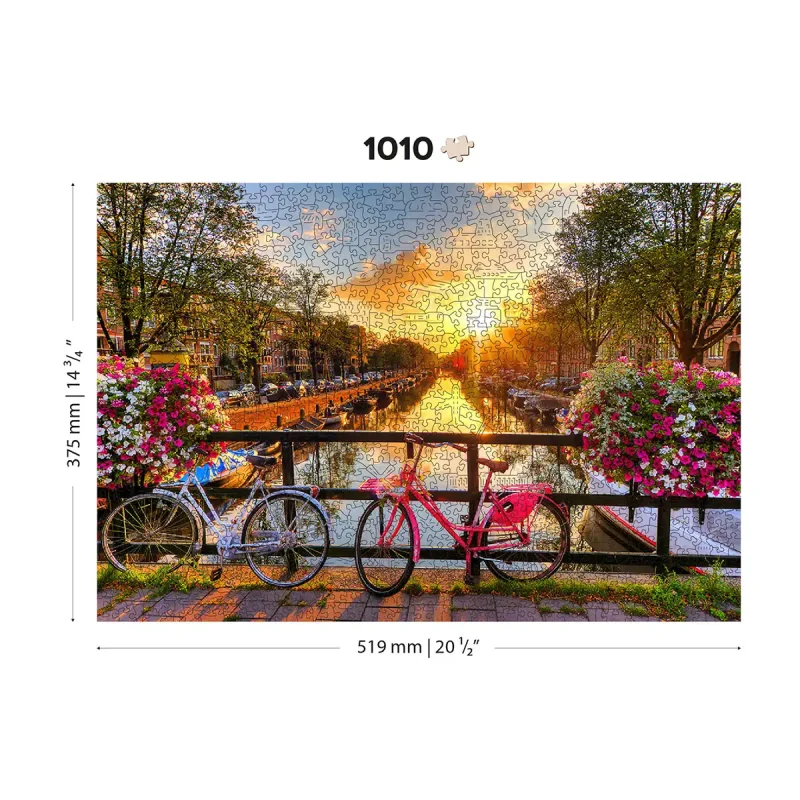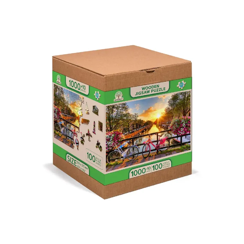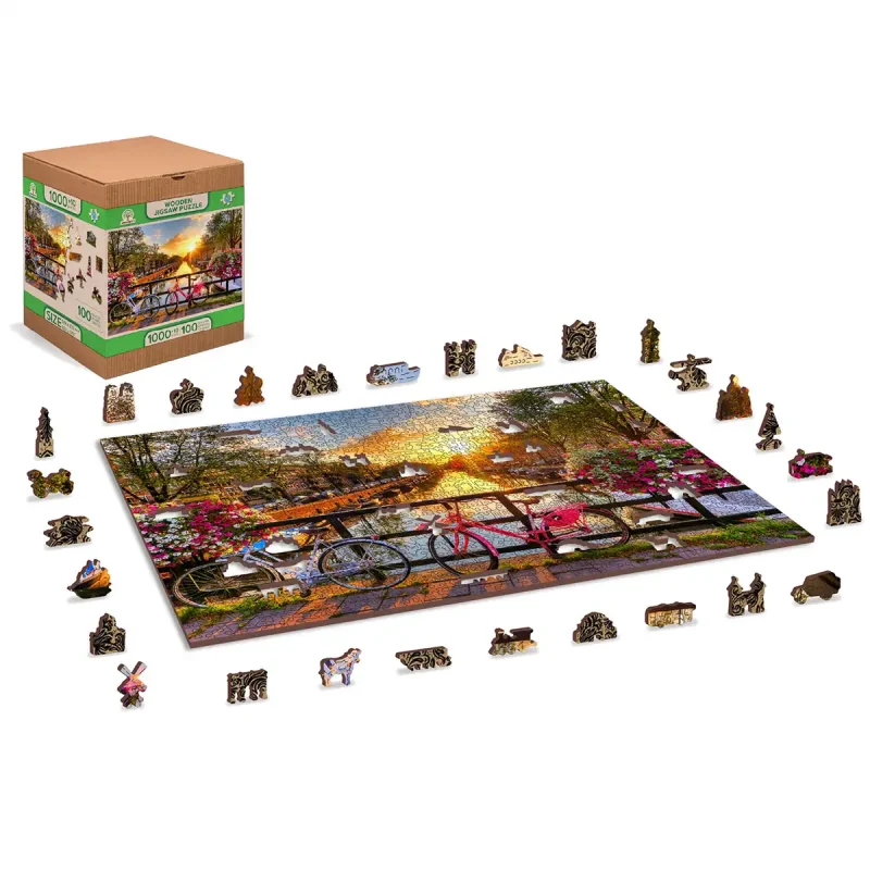Chaque pièce de ce puzzle en bois capture méticuleusement l’essence d’Amsterdam – une ville réputée pour son histoire riche, ses magnifiques canaux et, bien sûr, ses vélos distinctifs. En vous plongeant dans son assemblage, vous verrez une image vibrante d’un pont paisible au cœur de la ville, orné de vélos colorés pour lesquels les Pays-Bas sont célèbres.