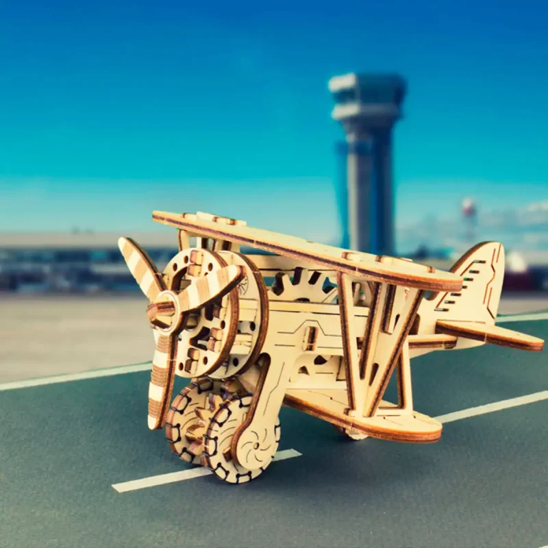 Une fois assemblé, le Biplan sert d’élément de décoration unique, un exemple d’art mécanique ajoutant une touche de nostalgie aéronautique et de charme DIY à tout espace.